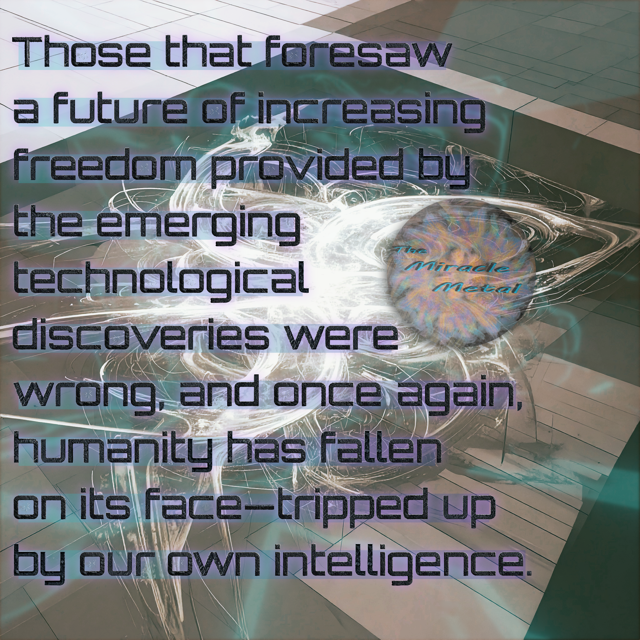 A spoken quote fragment from The Miracle Metal: Descension of Decency, read aloud by the author.